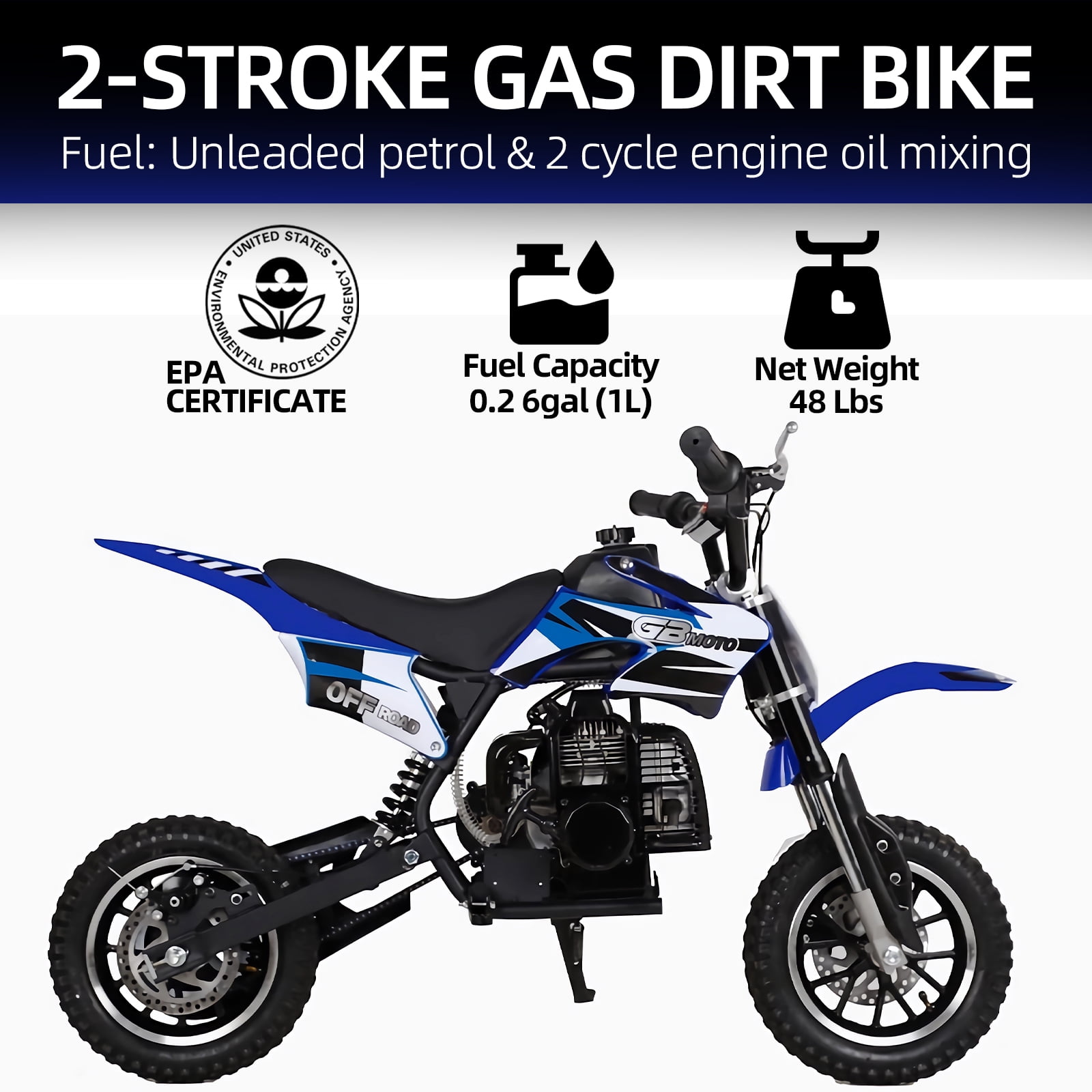Track 7 49cc 2 Stroke Kids Dirt Bike Off Road Gas Motorcycle Up To 20mph Gas Dirt Bike W Rear Suspension Pull Start Front Rear Disc Brake Blue Walmart Com